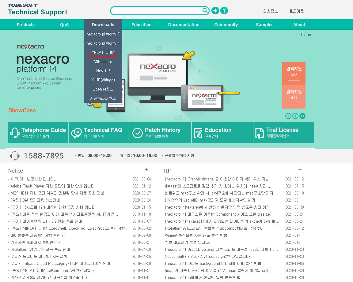 2. 홈페이지가 나오는데 메뉴바에 Downloads - XPLATFORM 클릭